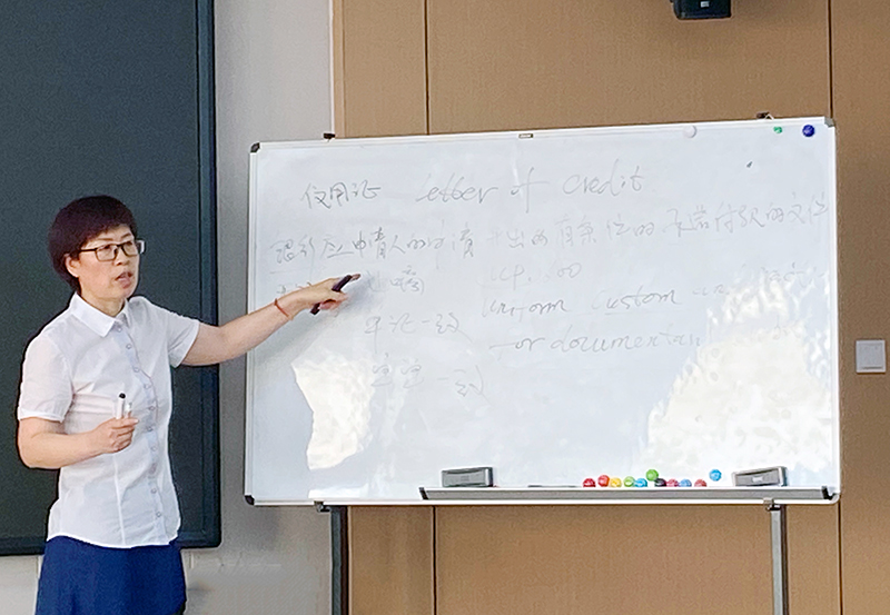 隨后,主講人對融資市場及主要融資品種進行講解,詳細區(qū)分解析了公司債券、企業(yè)債券、債務融資工具,并著重以集團投資企業(yè)——煙臺新能智慧產業(yè)園為例,講解了國際貿易結算工具信用證的使用和融資實務,為便于理解,她在現(xiàn)場繪制了信用證業(yè)務流程圖。講授中,主講人不斷拋出問題,設置了有獎問答環(huán)節(jié),大家一直緊緊跟隨著她的節(jié)奏,認真聆聽,主動思考,深入探討交流。